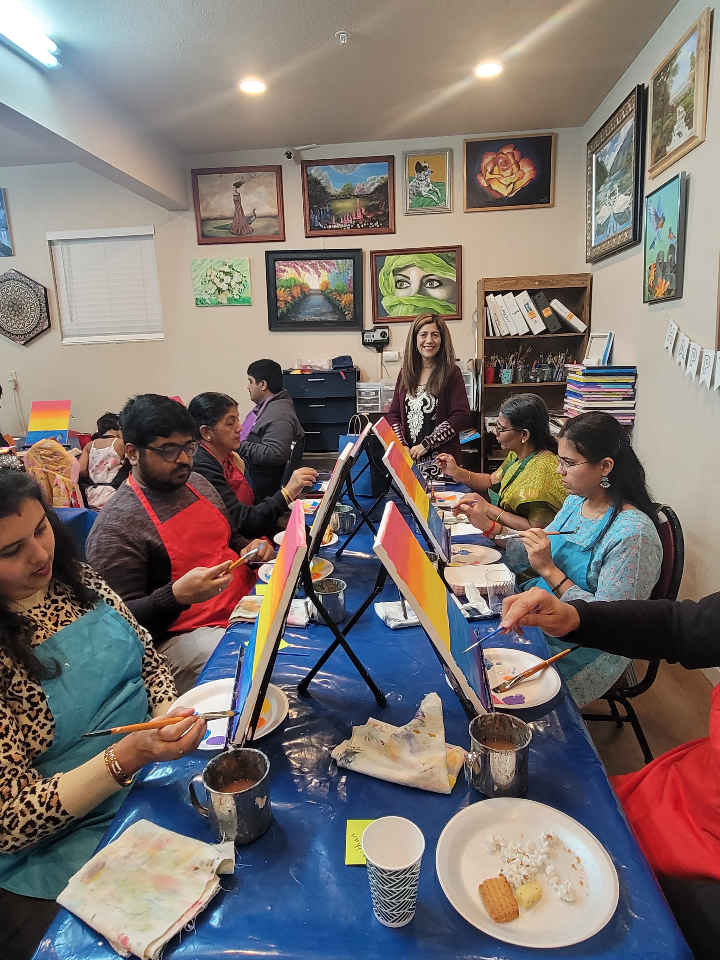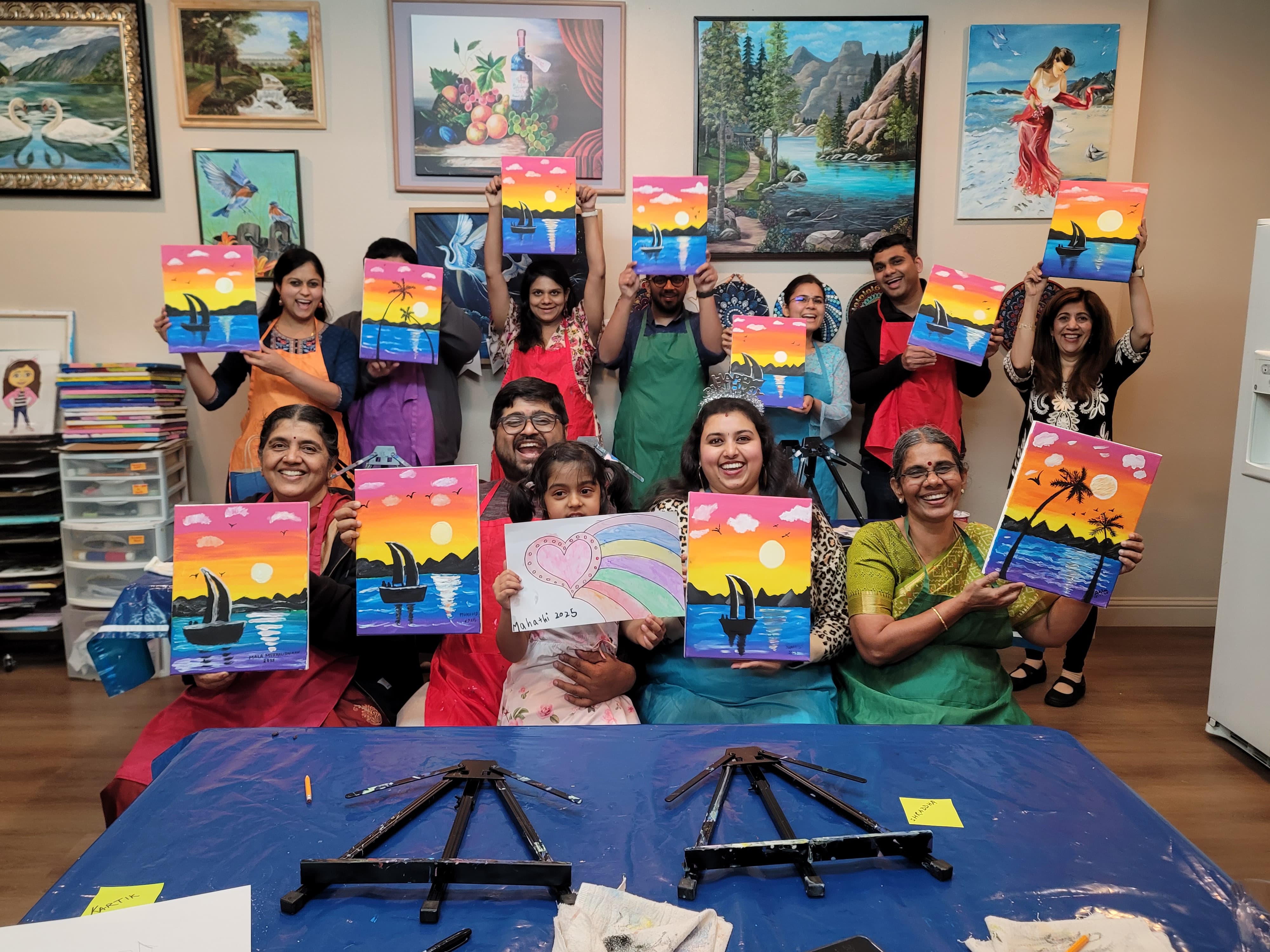 | Looking for a fun, creative way to celebrate? We also host painting parties for adults — perfect for: Birthdays Team-building events Friends’ get-togethers Girls’ night out Sip and paint events Whether at your venue or our studio, we provide all the art supplies and guidance needed to create a painting you’ll be proud of. |